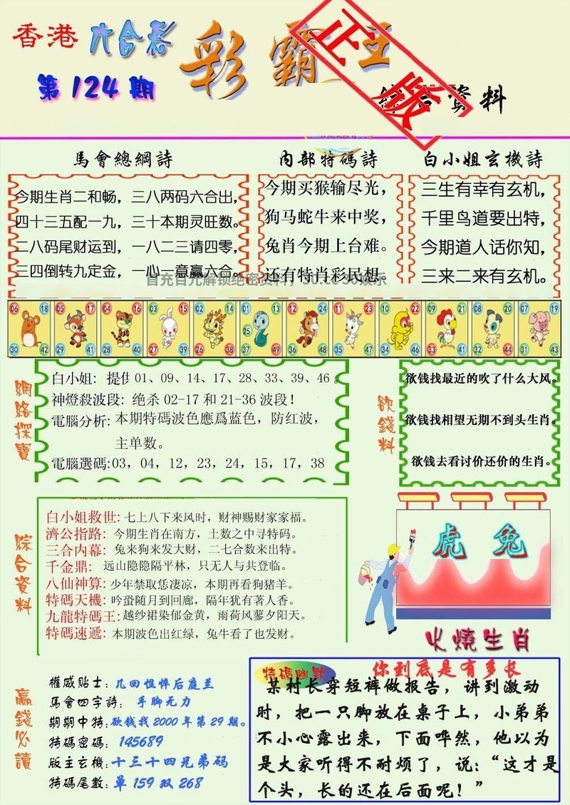 123期:单【鸡兔牛】双【龙鼠狗虎】开:羊23准